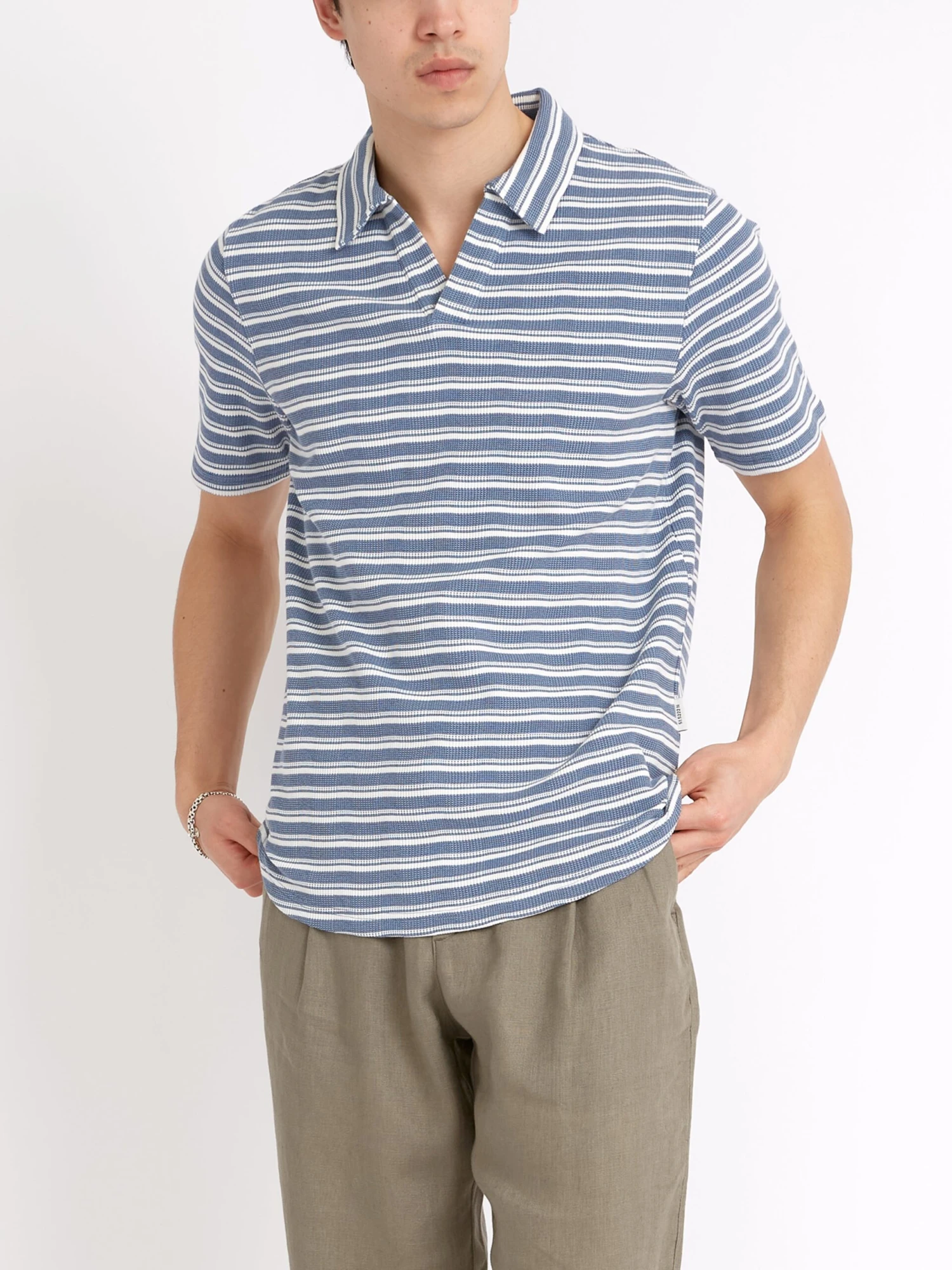 A short-sleeve polo is an ever-present piece of stylish summer kit that you can dress up or down. Our Austell style with blue stripes is a really versatile option that you can wear with chinos, shorts, or even relaxed tailoring.