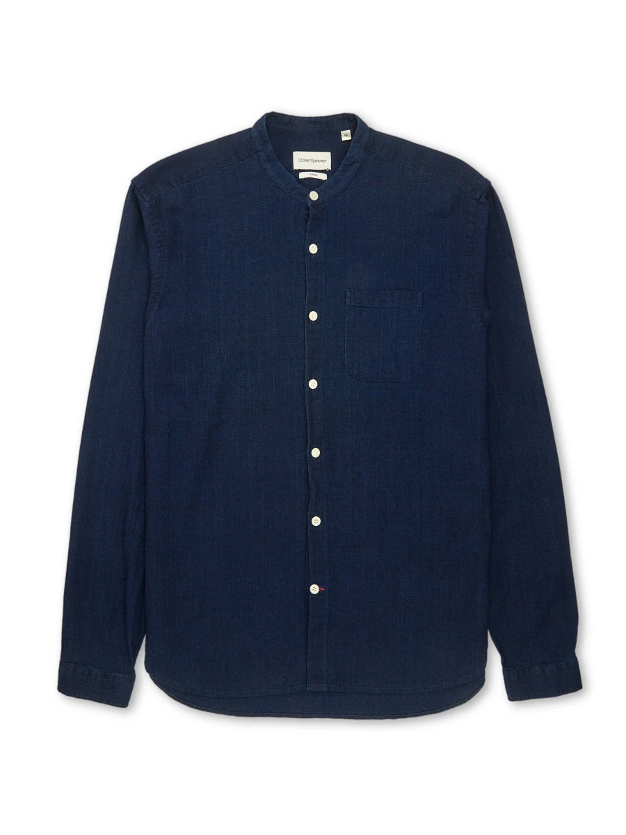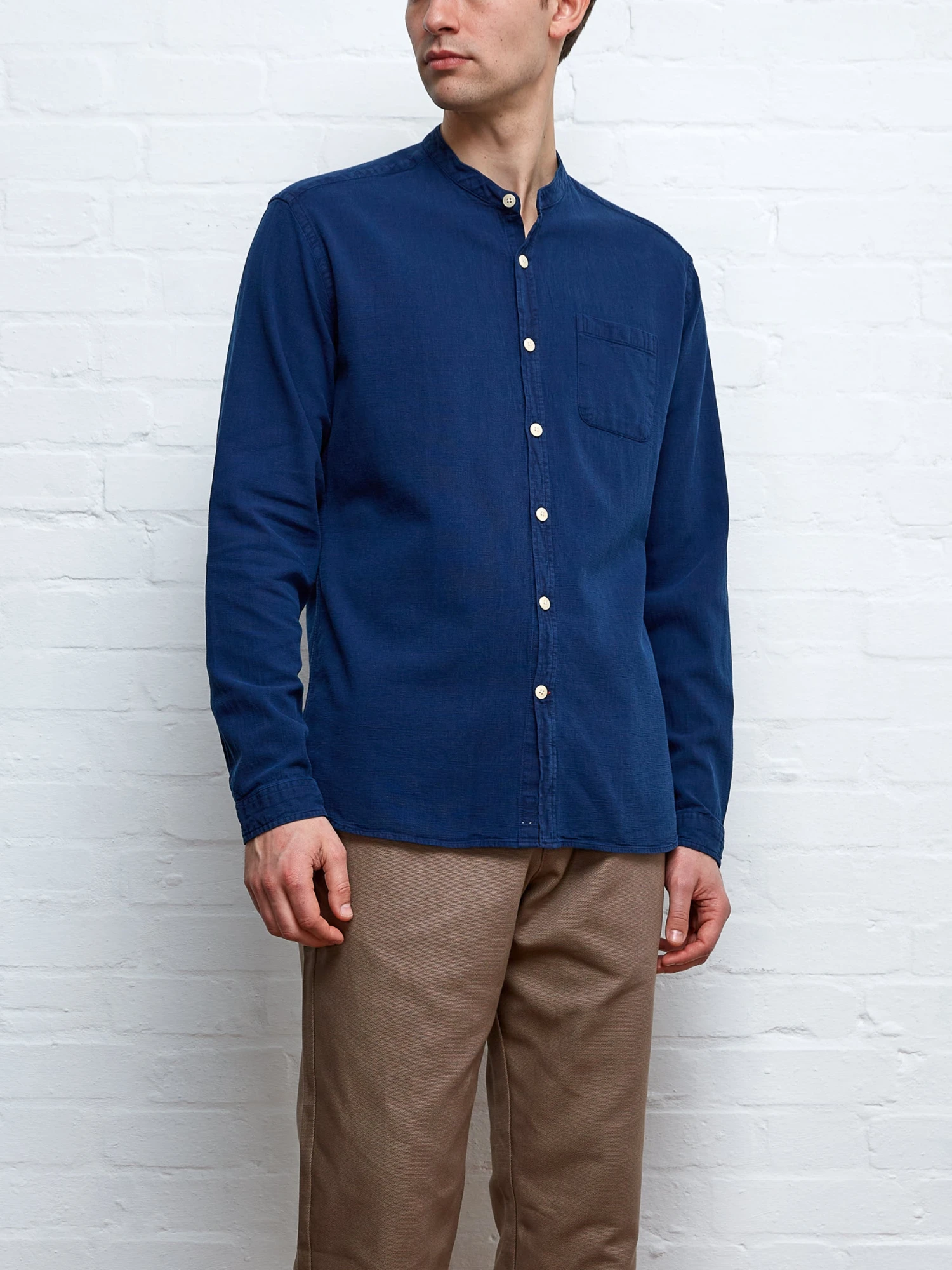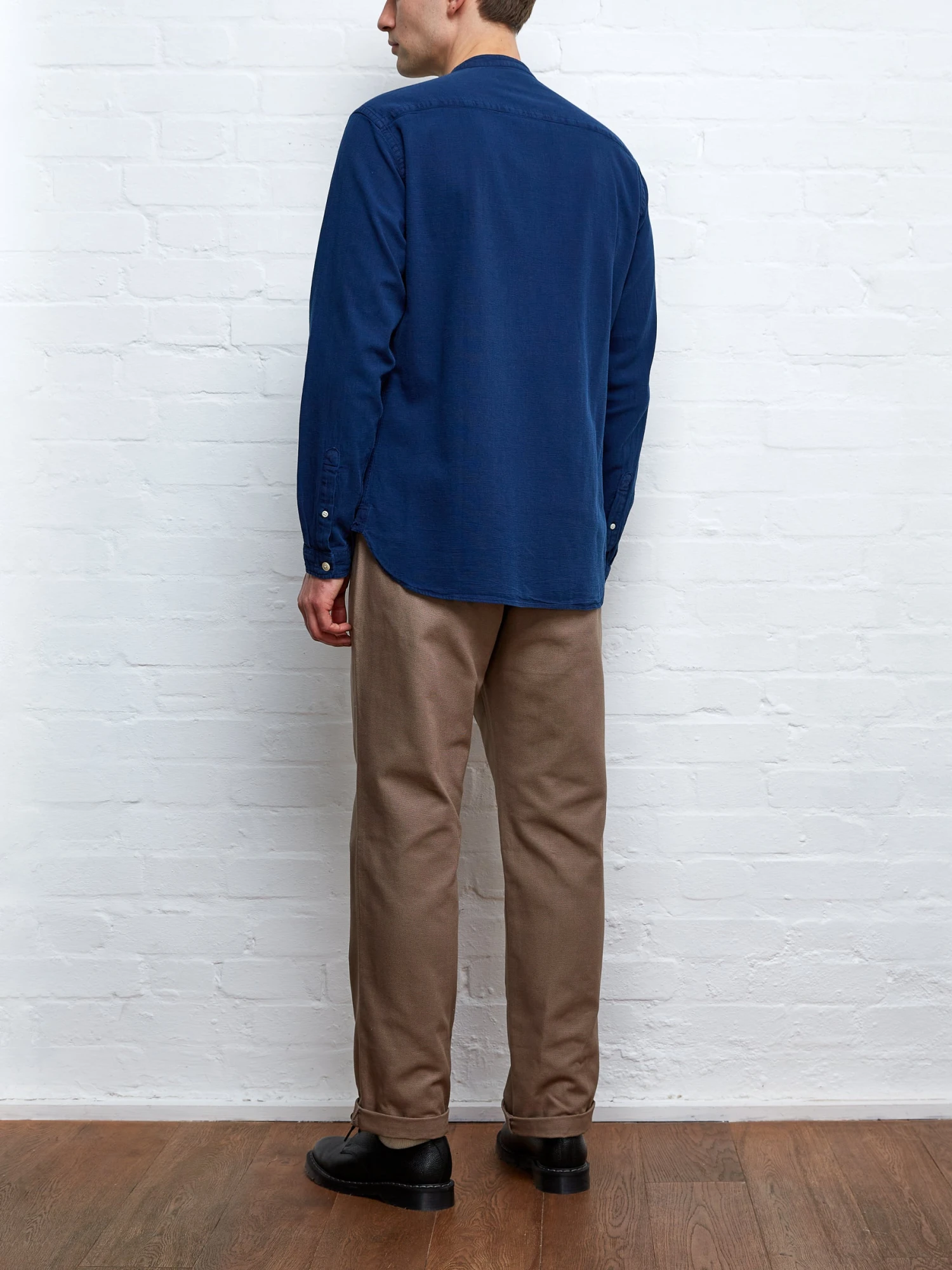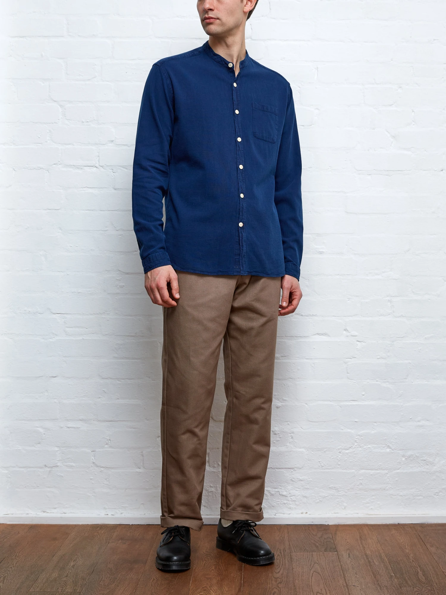 The grandad collar comes from humble origins, but has cemented itself in the pantheon of modern menswear. We’ve taken the workwear classic and updated it with this lightweight indigo-dyed cotton, ideal for wearing on its own or beneath one our cotton knits. Be sure to give it a few washes before introducing it to a cream sofa.