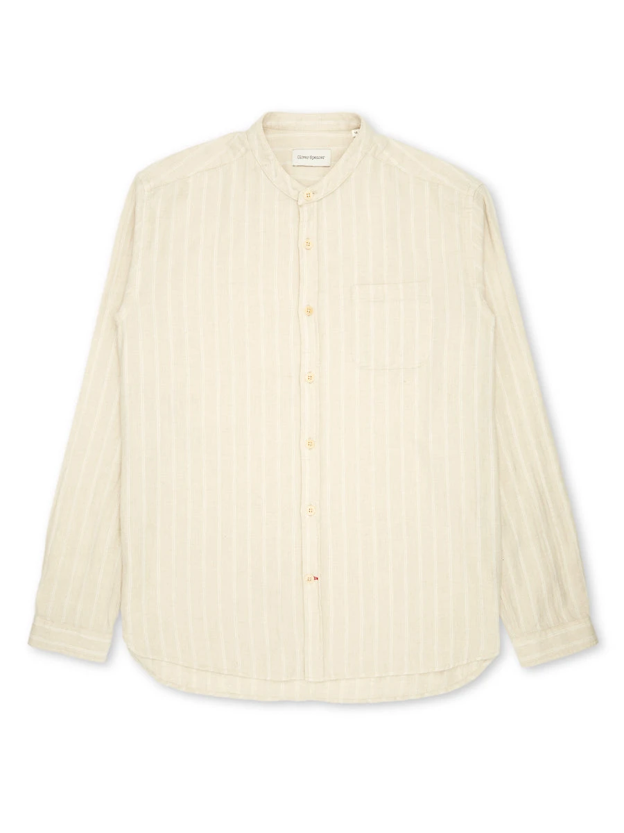 Born of utilitarian origins, the grandad collar has become a workwear classic, dressing down the archetypal men’s shirt to something altogether more relaxed. This version has been cut in a cotton and linen blend, and makes for a relaxed spring/summer shirt that’s simple to style.