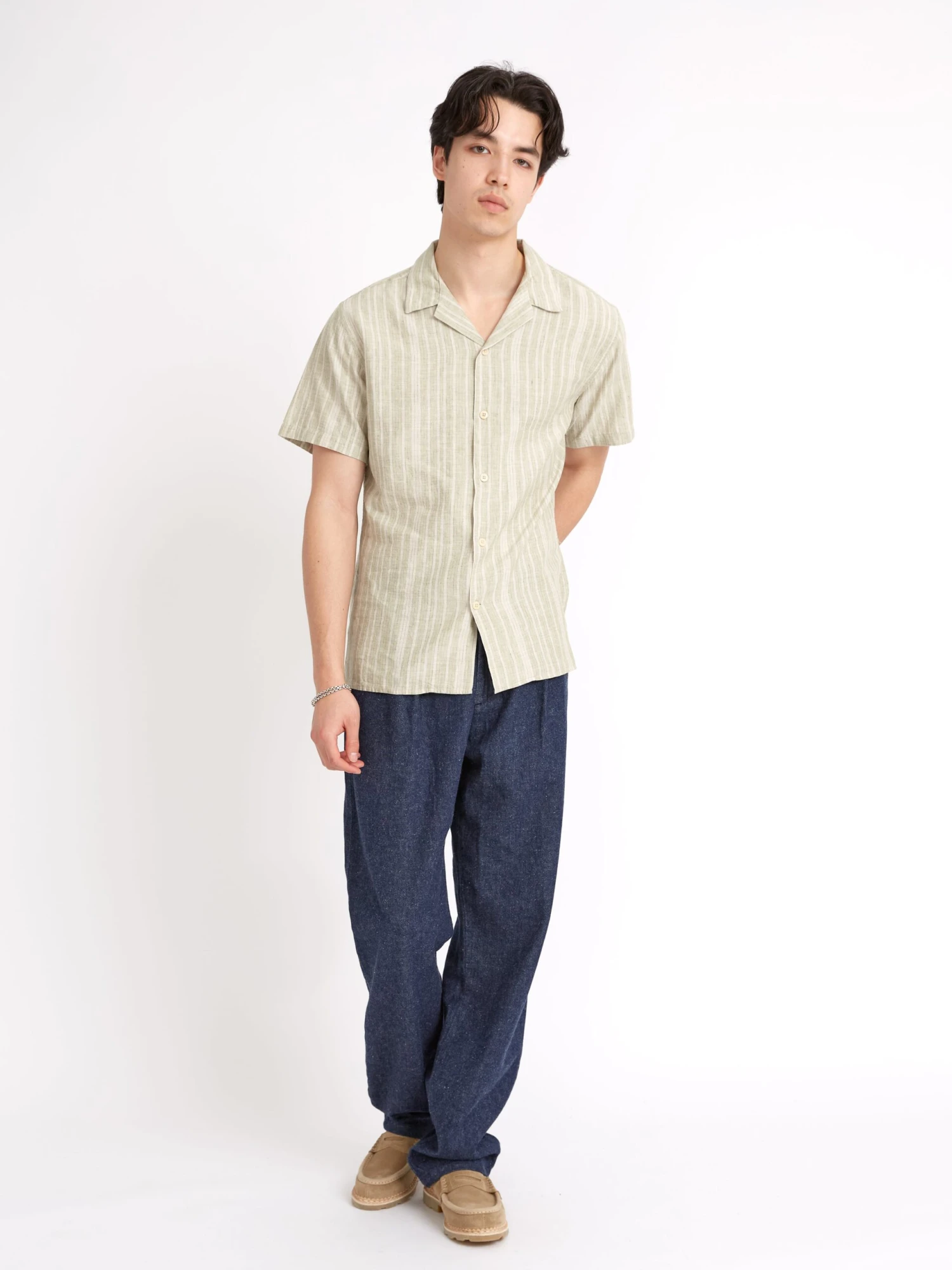 Inspired by the classic Cuban camp collar shirt, the Havana short-sleeve shirt is a relaxed tropical style that is perfect for all of your spring and summer fits. Constructed from a soft and lightweight organic cotton and linen blend, this green style will pair with all manner of neutral tone trousers and shorts this season.
