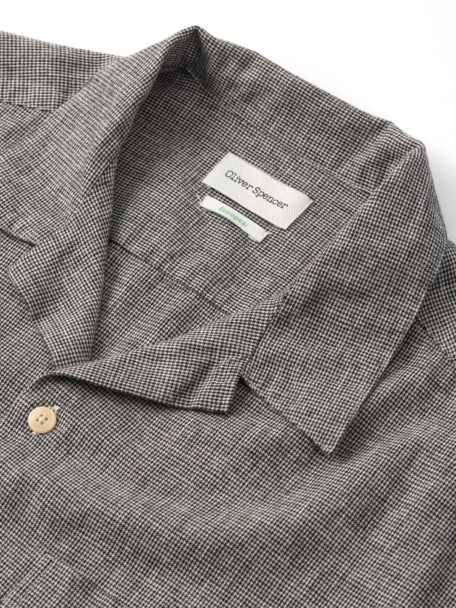 Inspired by the classic Cuban camp collar shirt, the Havana short-sleeve shirt is a relaxed tropical style that is perfect for all of your spring and summer fits. Constructed from a soft and lightweight cotton and linen blend, this grey micro-check style is a great minimalist option, especially for those who love monochrome wardrobes.