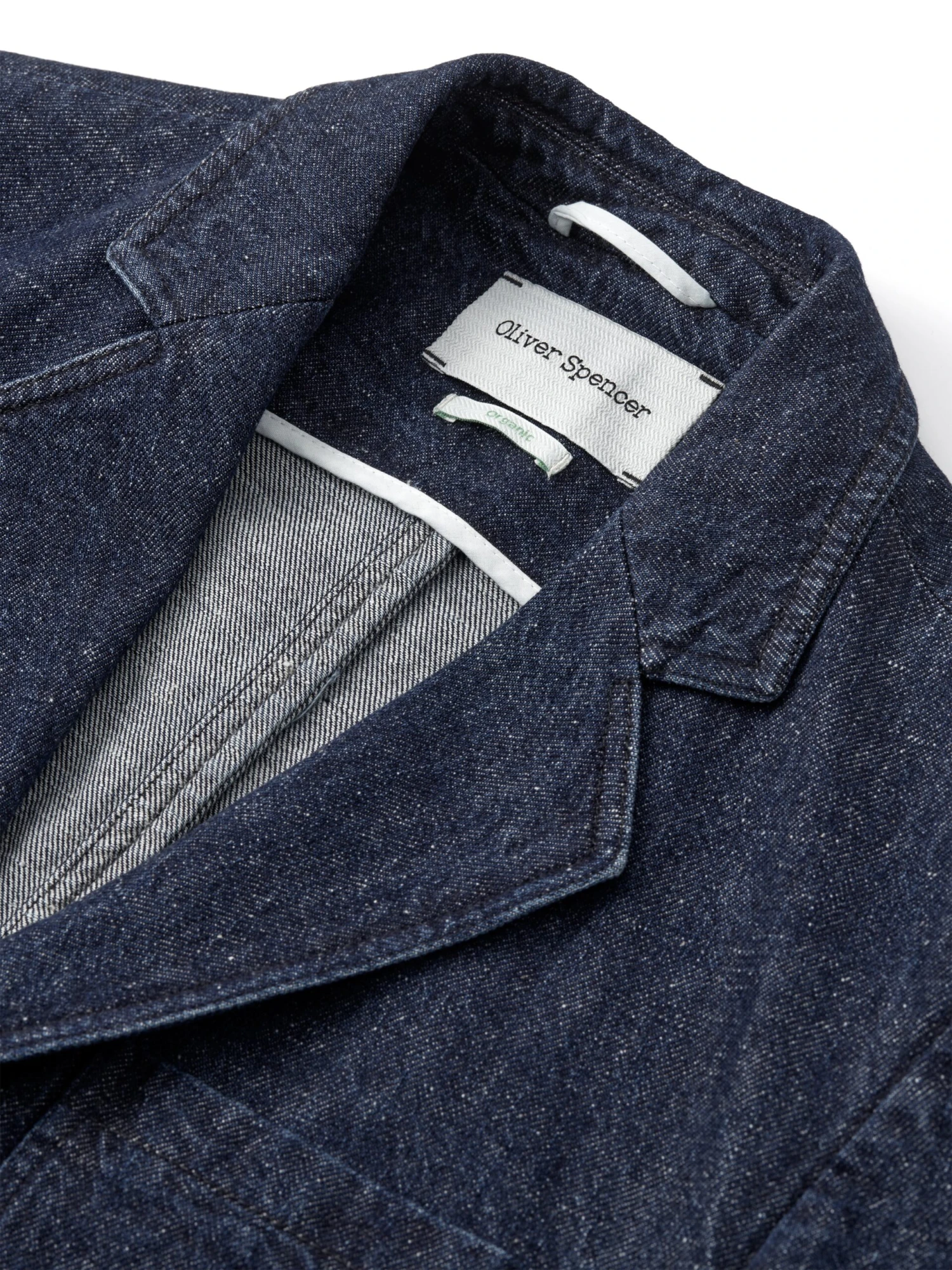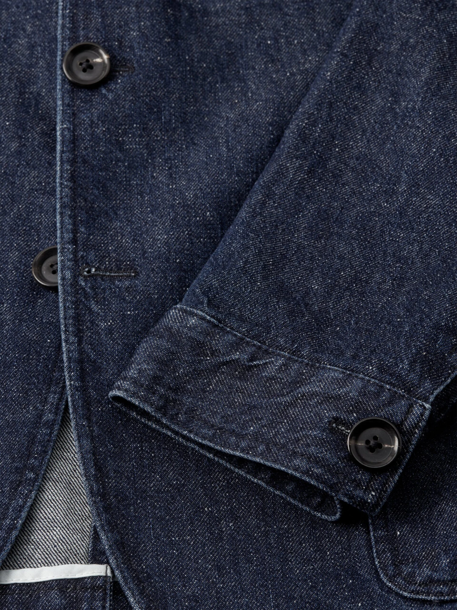 Denim has come a long way from its rugged workwear origins, as evidenced by our new Milton jacket. Unstructured for a perfect natural drape and cut from an organic cotton cloth, the Milton jacket features a notch lapel and two front flap pockets, making it a relaxed and casual piece of everyday tailoring. Wear it with our matching denim pleated trousers for a stylish contemporary look.