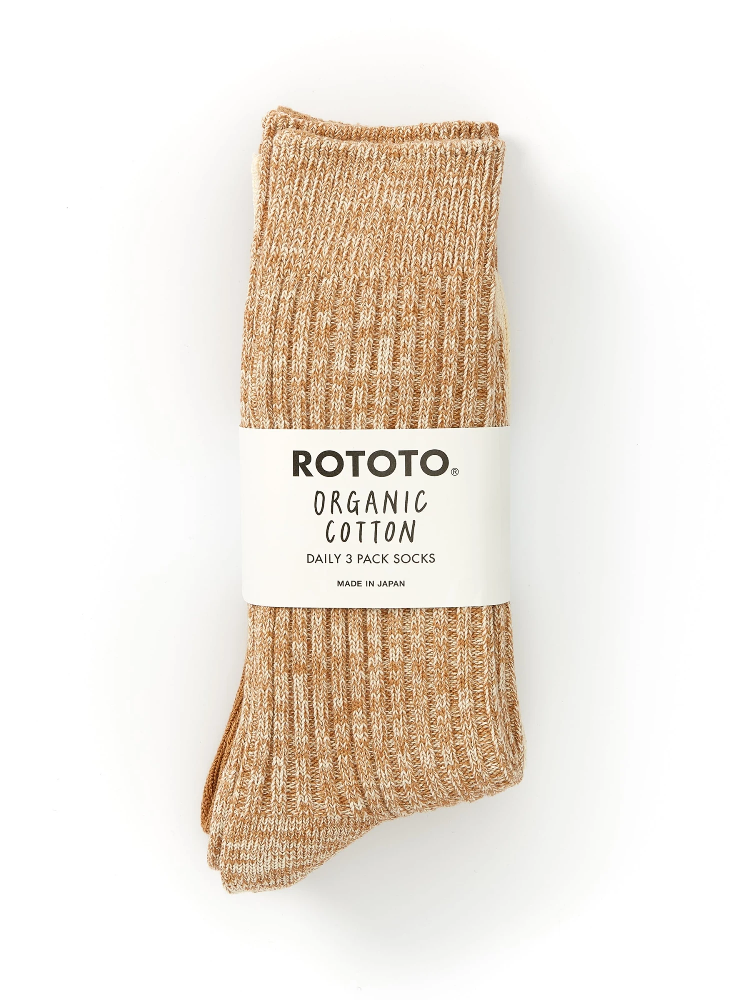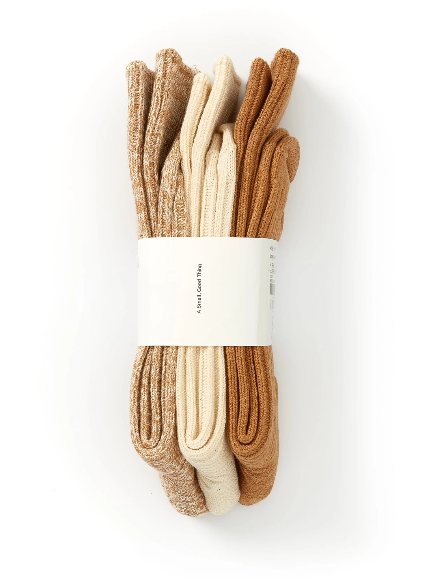 Low-gauged ribbed socks made with organic cotton. Each pair in the pack are slightly different in style, so you can have the same Ro To To comfort whilst having a subtle change each day.