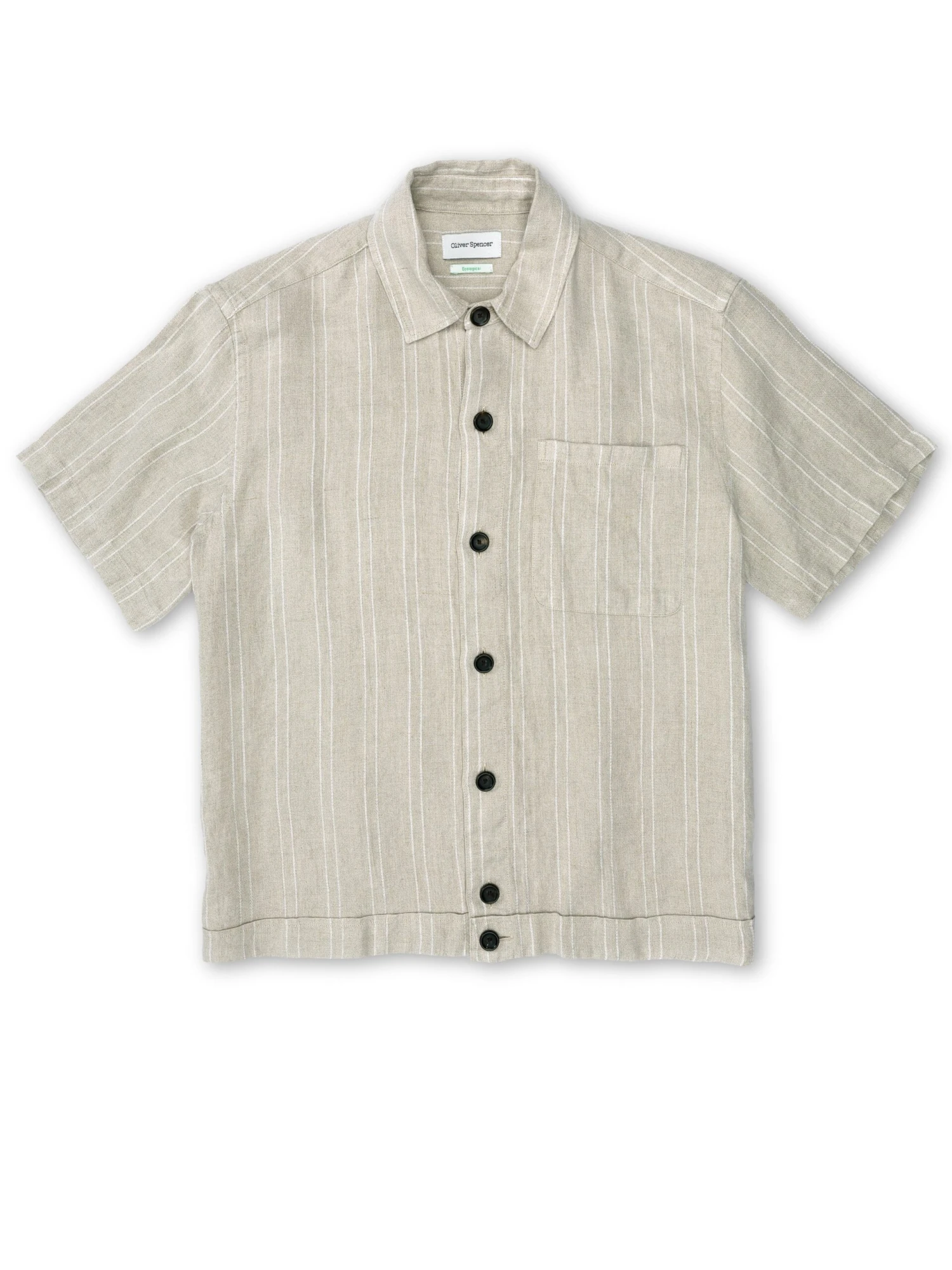 Crafted in a beautifully soft premium ecological linen fabric, our Milford shirt in Middelboe sand is a great summer option for casual fits and relaxed tailoring. Featuring a subtle chalk stripe pattern, it’s perfect to wear with pastel tones and creams for an understated look of relaxed elegance.