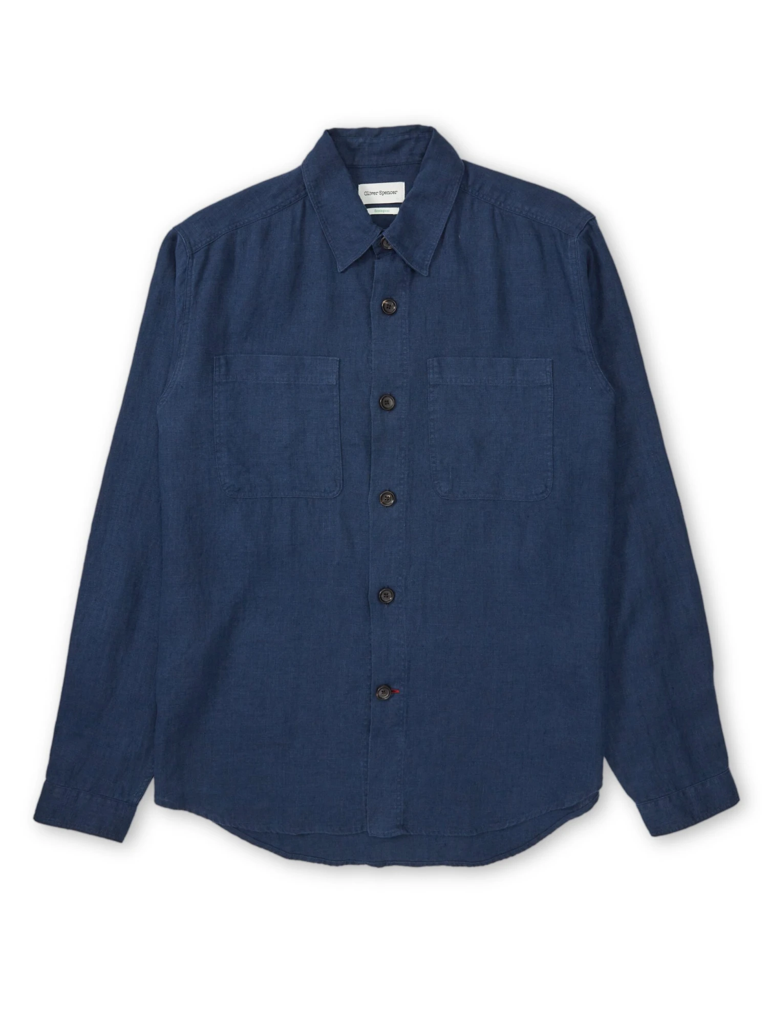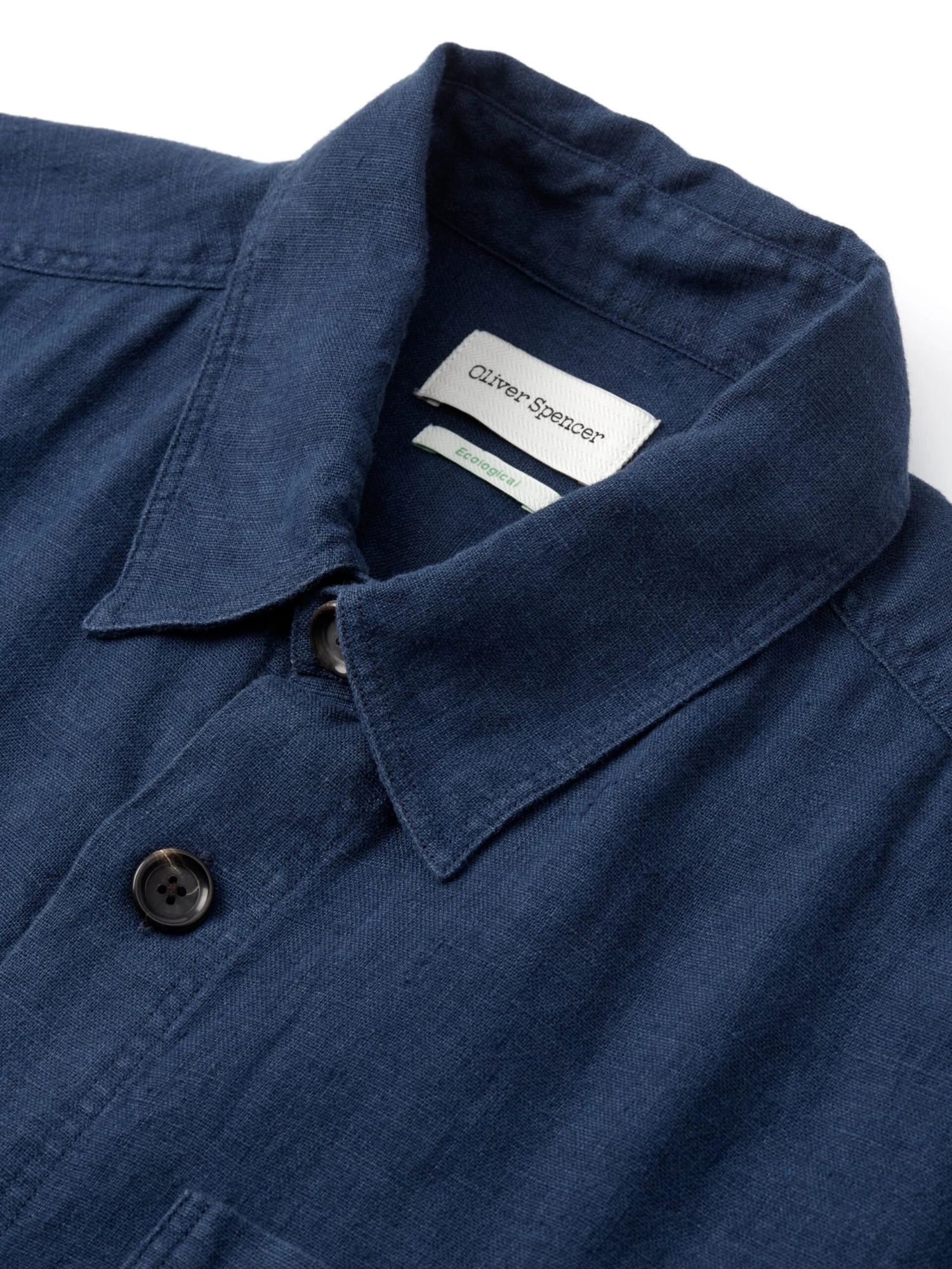 Inspired by vintage military shirt silhouettes, the Treviscoe shirt is a modern classic and a great fit for contemporary workwear wardrobes. This 100% linen style in navy is a great option for a breezy overshirt this season, paired with your favourite jeans.