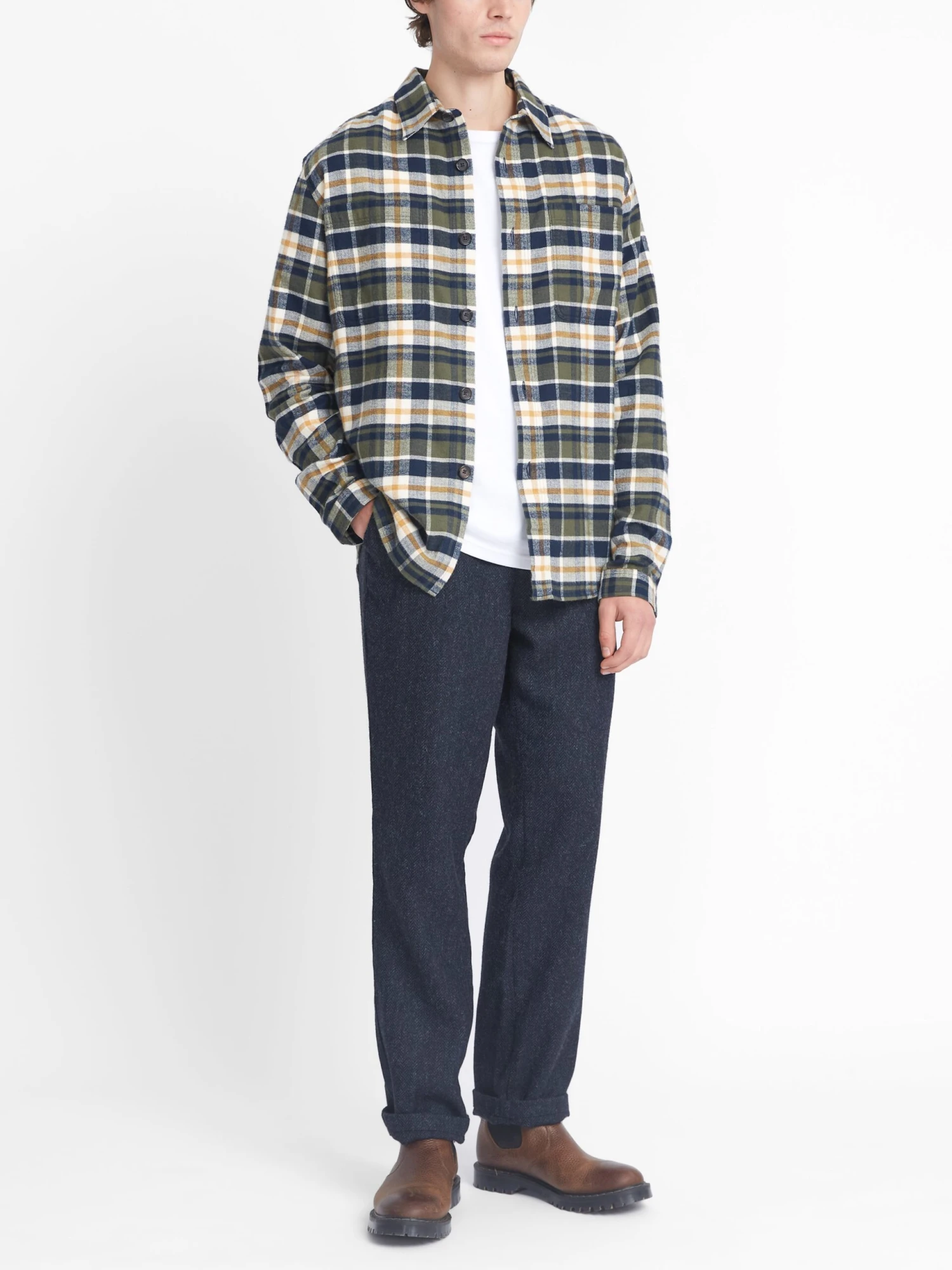 Woven from 100% organic cotton, this brushed cotton overshirt has a beautifully soft nap and comes in a classic plaid style, making it an indispensable part of your casual winter wardrobe.