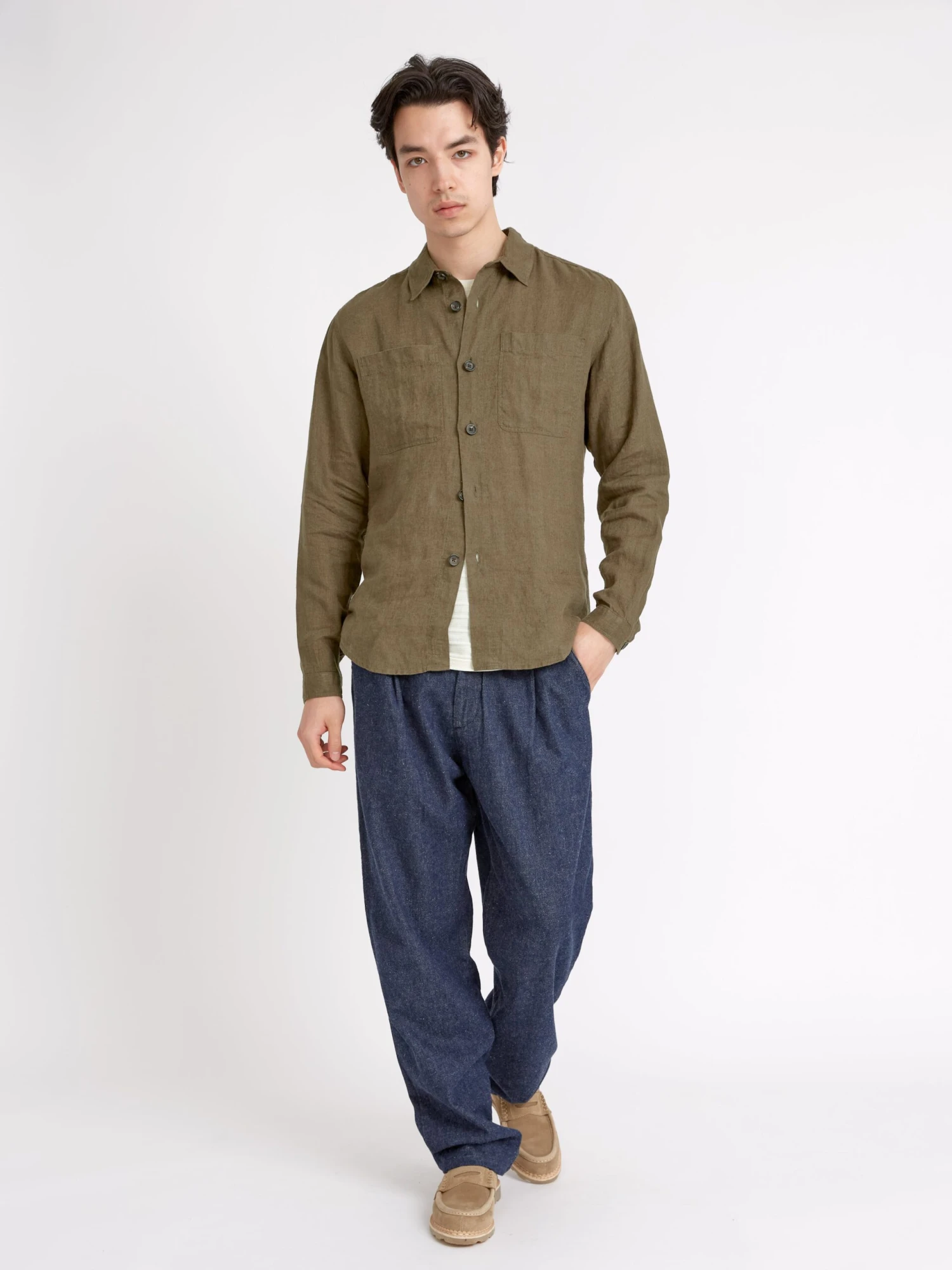 Cut in 100% linen in a rich green tone the Treviscoe shirt is a two patch-pocket style inspired by vintage utilitarian and military shirts. It’s perfect worn with our drawstring trousers or tailored shorts for a relaxed off-duty summer look, or you can wear it as a lightweight overshirt layered over a tee.